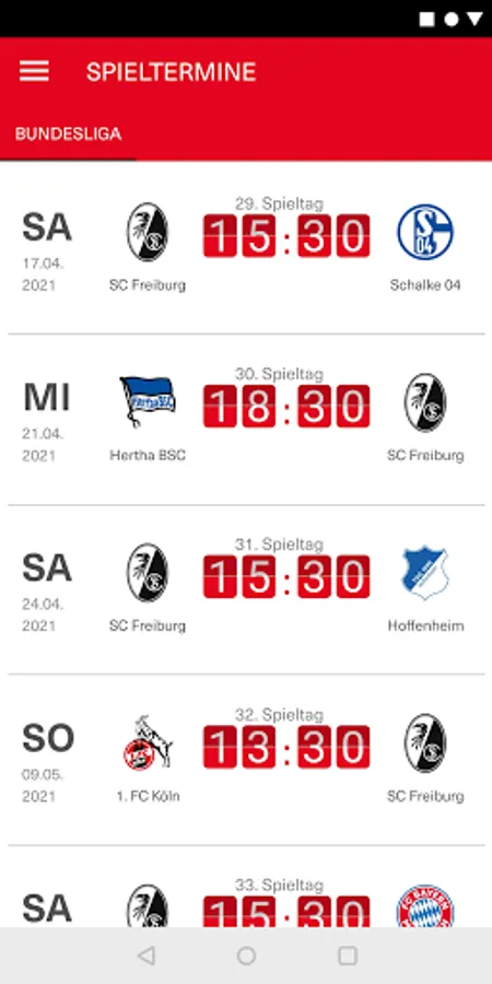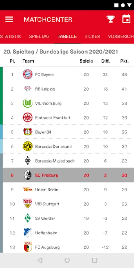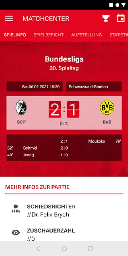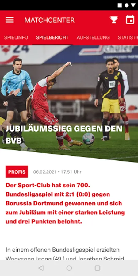 • Matchcenter with the official SC live ticker, line-up before the game, extensive pre- and post-reports and much more.