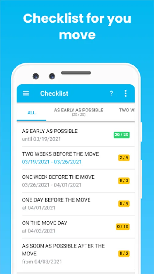 - Do you need help with your move? Look for partners in your area and link them for a smooth flow.