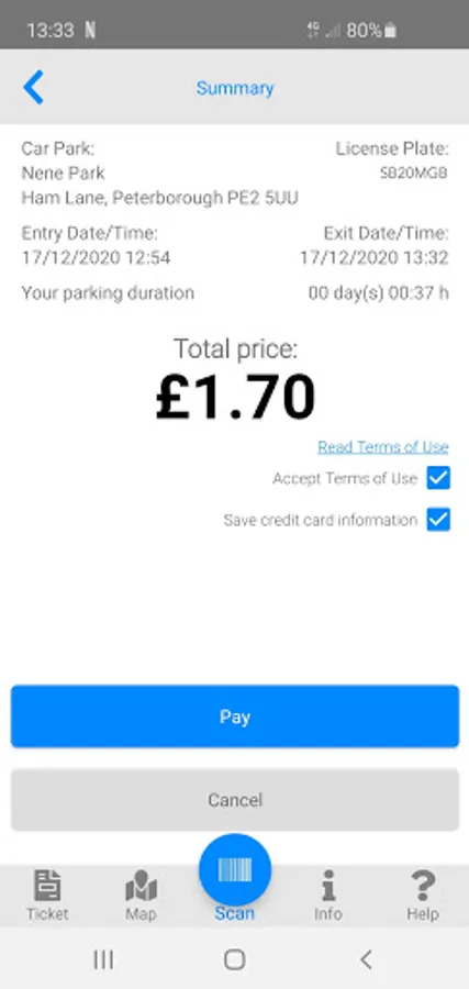 You can use the entervo smart pay app to quickly navigate to the nearest parking facility. Upon arrival, you either take a ticket, or drive in as your license plate is scanned by a license plate recognition system. Forgot the whereabouts of your parked car? The application offers a parking space locator aid to easily get back to your car in no time. When leaving the parking facility, use the entervo smart pay app to scan your ticket or fill in your license plate number. Finally, you can pay conveniently using Credit Card or PayPal account and leave the facility.