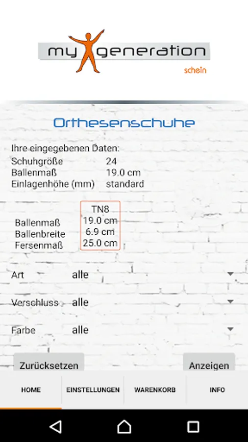 The function warehouse query, you can check directly whether a model of our brands my generation, LucRo actiflex, or Ortho Lady / Ortho Gent is available.