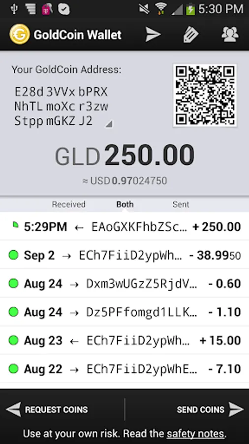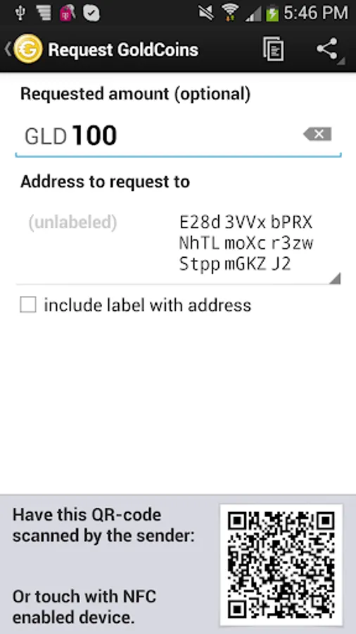 • Sending and Receiving of Goldcoin with NFC, QR-codes or Goldcoin URIs
