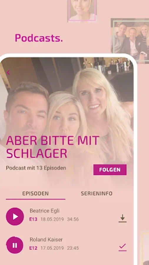The Schlagerplanet Radio app offers a whole range of new podcasts. The big stars in personal conversation. Also there are: Beb Zucker, Beatrice Egli, Norman Langen, Ross Anthony, Roland Kaiser, Kerstin Ott, Fantasy and many other stars.