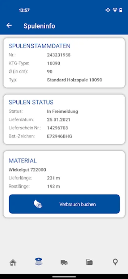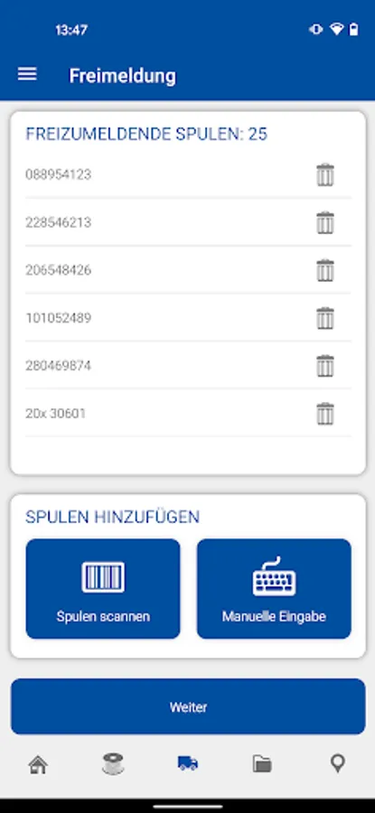 In principle, the reel number can be scanned by activating the use of the camera, so that all functions of the app are available. Alternatively, the app can also be used by manually entering the coil number.