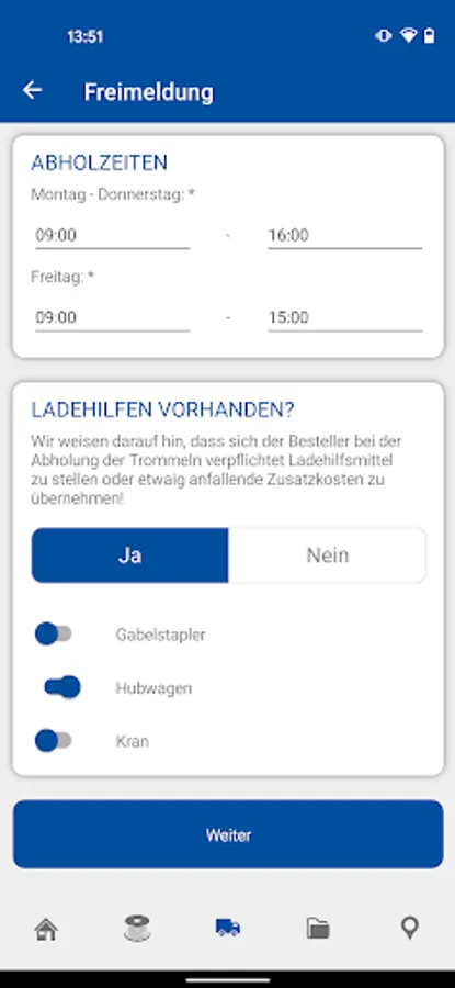 In order to guarantee a smooth collection, all necessary data are requested. This entry only has to be made once, regardless of whether one or more coils are reported free.