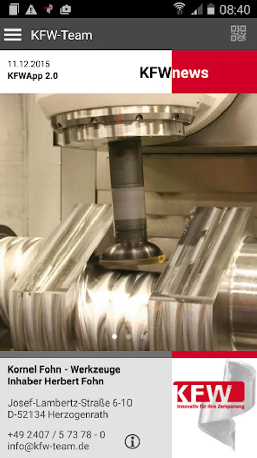 Read the KFWcode in the printed matter from KFW team and see films about tool applications and the latest tips and tricks from the world of metal cutting. With KFWscan You can of course also other two-dimensional code from many different vendors decrypt (QR-code, barcode).