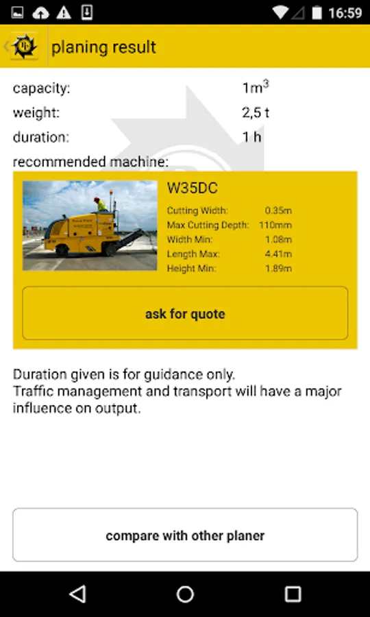 Than gives a recommend machine to use and option to contact supplier for a quote.