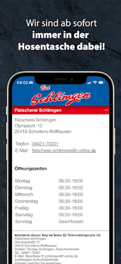 Welcome to the app of the Schlimgen butcher shop!