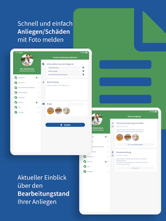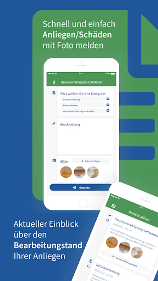 As a tenant or owner, you can report damage or concerns directly with photos using our app. Your inquiries are then available to our employees and can also be forwarded to craft businesses.