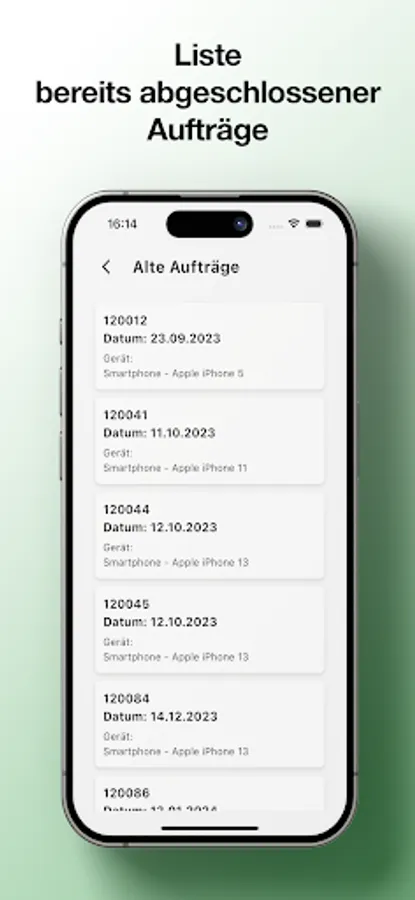 Manage completed jobs: Even after the repair is complete, you can access past jobs at any time. This is particularly useful if you need warranty information or are looking for reference information for future repairs.