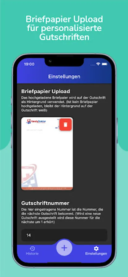 - Your company details or your own stationery (upload via settings) can be displayed on the credit note.