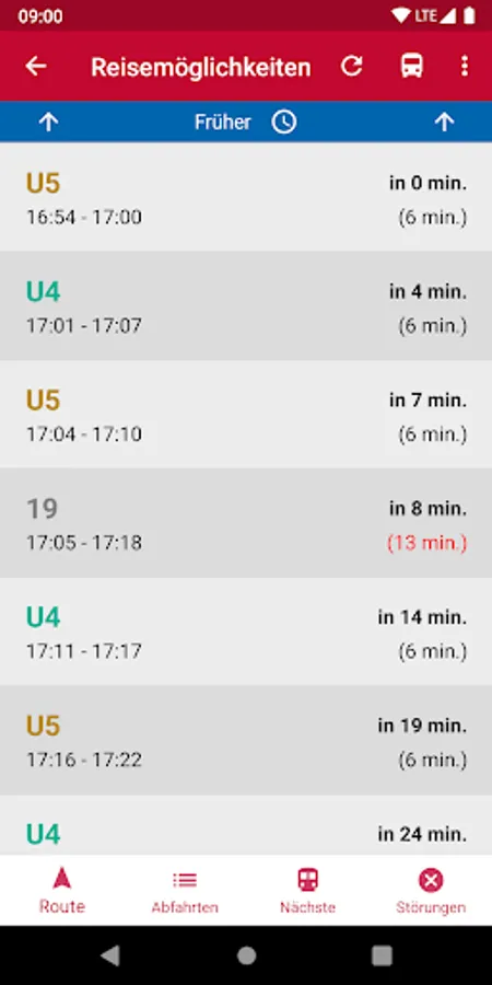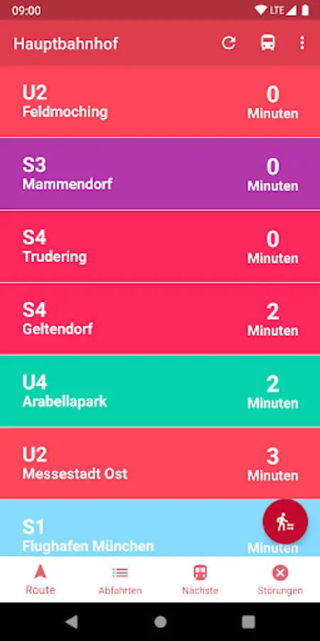 The departure board feature also shows the next departures at the selected station while allowing the exclusion and filtering for specified means of transport.