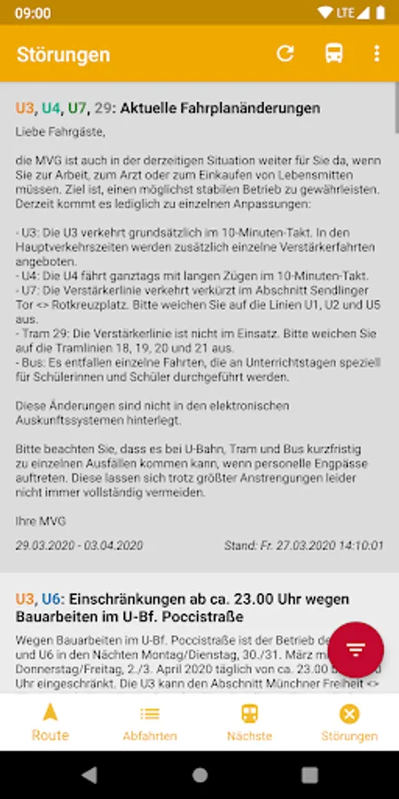 Service interruptions in the network of the MVV can also be viewed with live and up-to-date data stemming straight from the MVV.
