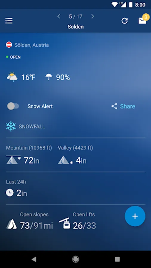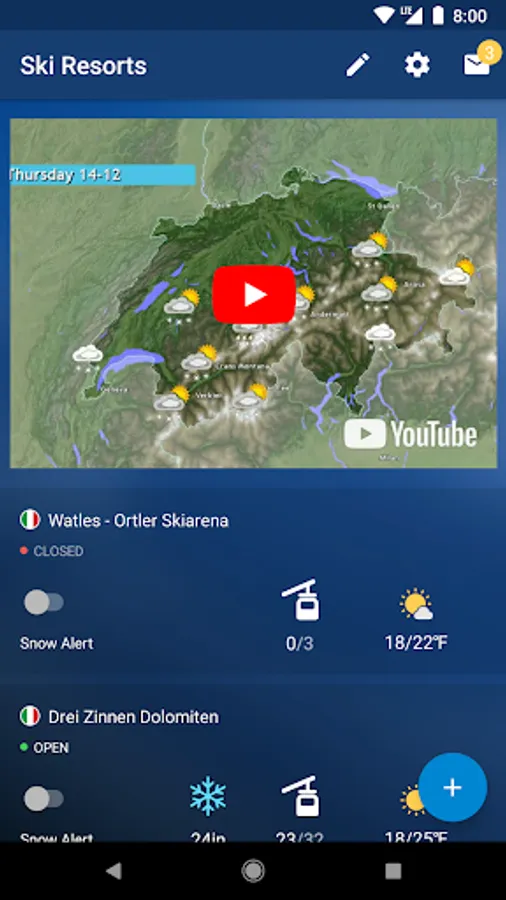 Features like snow alter and facts about snow reports, prepared slopes, weather forecasts and information about lift passes makes the app a must have for all skier.