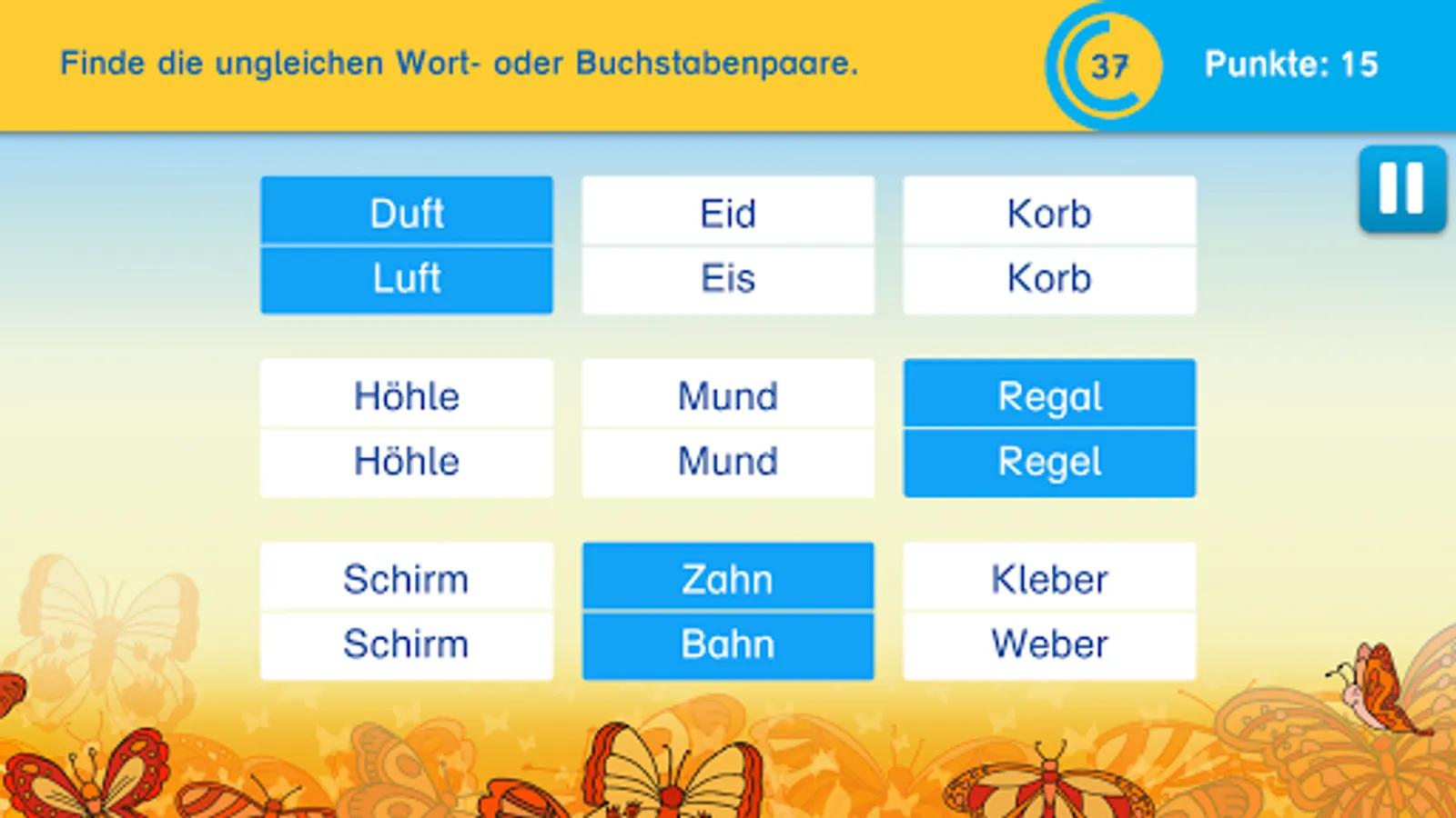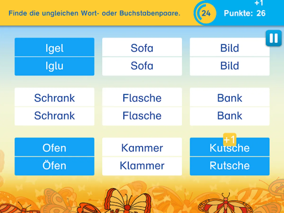 This exercise holistic detection and the recognition of the word form of one- and two-syllable words can thereby detect faster the child words, so his reading fluency increases.