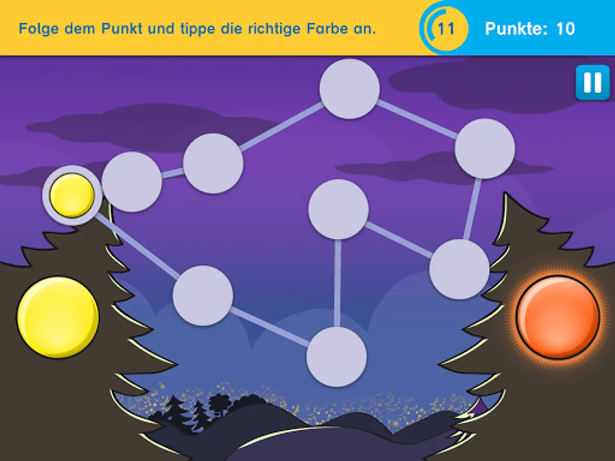 Through the eyes of a fast migratory point is tracked, which changes from time to time its color. This exercise the powers of concentration and a uniform and rapid eye movement. Simultaneously, the knee-jerk reaction and eye movements are practiced. Because with a liquid and fast reading, the eyes do not move smoothly from letter to letter, but they jump from one breakpoint to the next.