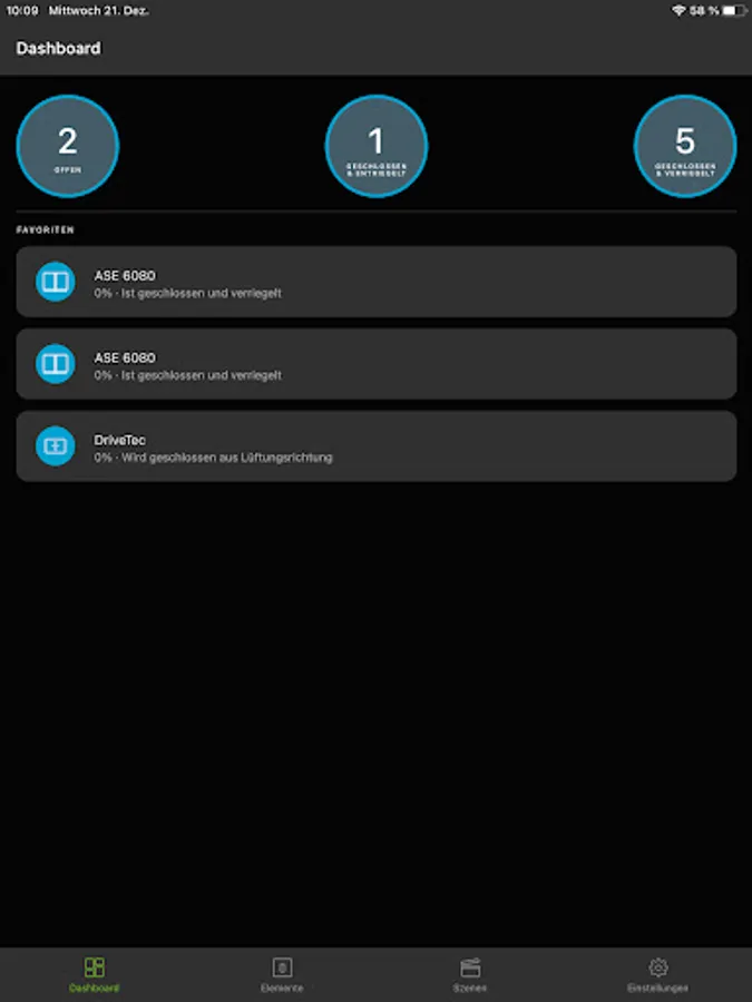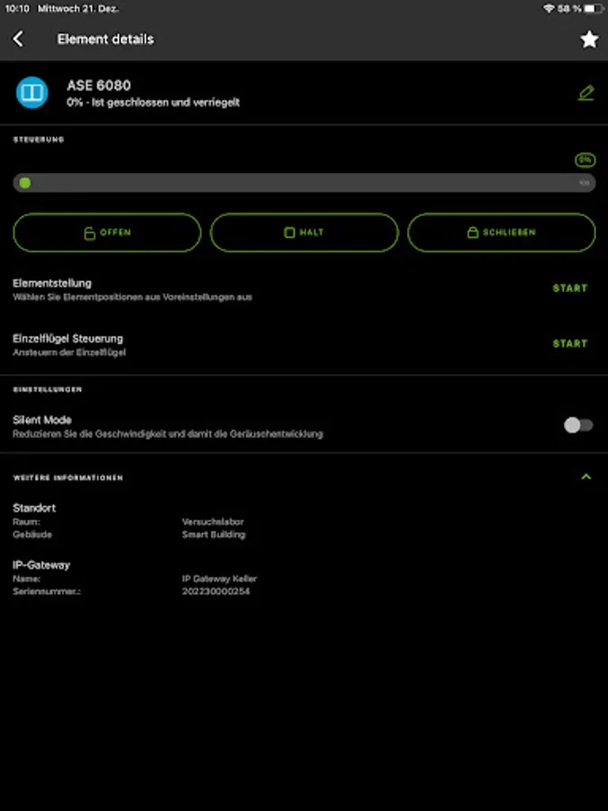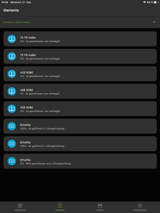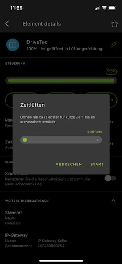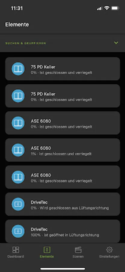 The application enables you to control your Windows or sliding systems in a single mode or group mode. Convenience functions like time ventilation or element positioning can be activated simple and fast.