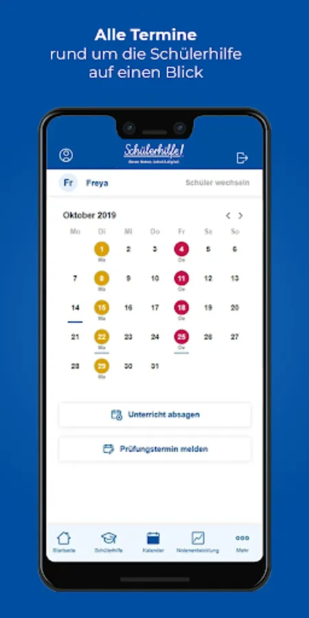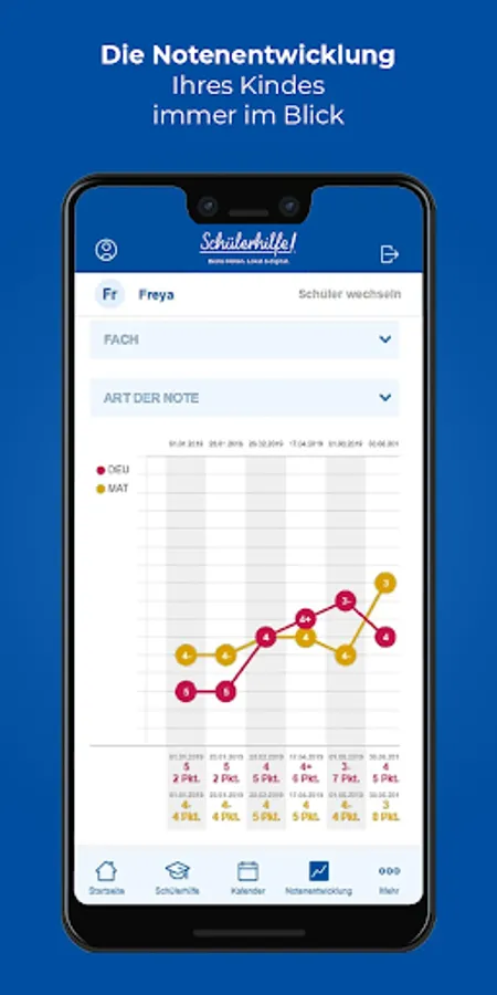 Don't miss any more important tutoring appointments - thanks to our calendar overview with course dates, parent meetings and insight into your child's presence and absence. With our visual overview of grades, you can even keep an eye on your child's development.