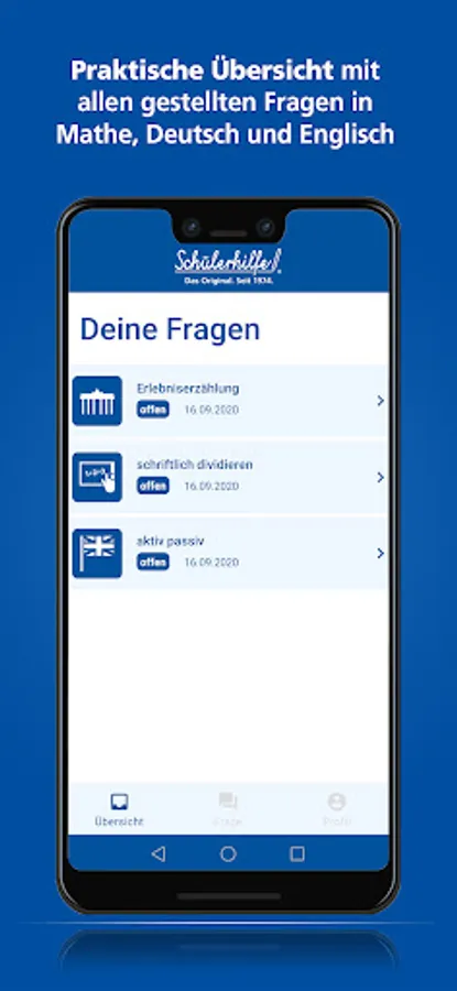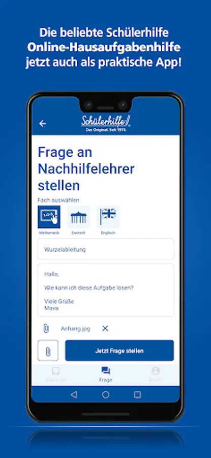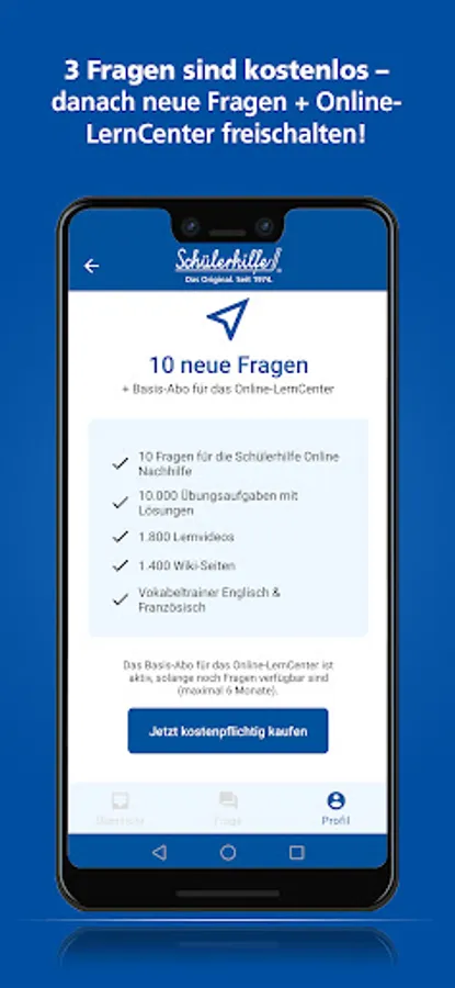 The first 3 questions are free - so you can get started right away and improve your grades! If you like the Schülerhilfe online tuition app, you can activate 10 new questions at any time for a fee. You will receive the online learning center from Schülerhilfe for up to 6 months free of charge. Be sure to ask your parents to help you register and purchase.