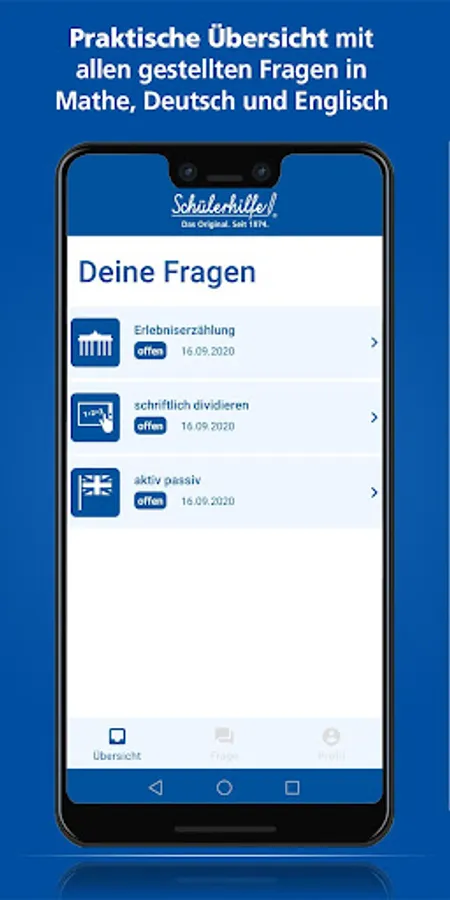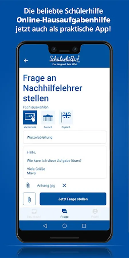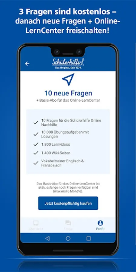 The first 3 questions are free - so you can get started right away and improve your grades! If you like the Schülerhilfe online tuition app, you can activate 10 new questions at any time for a fee. You get the online learning center of the Schülerhilfe for up to 6 months free of charge. Be sure to ask your parents to help you register and purchase.