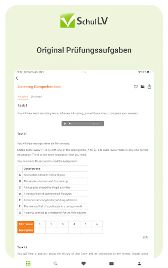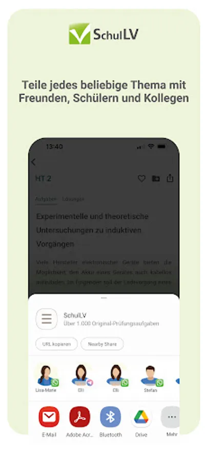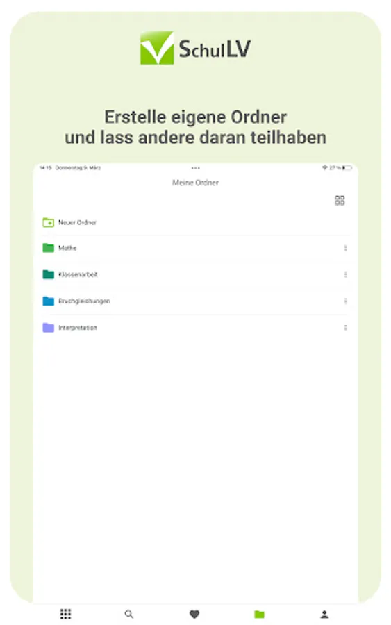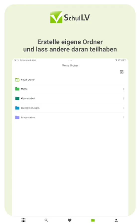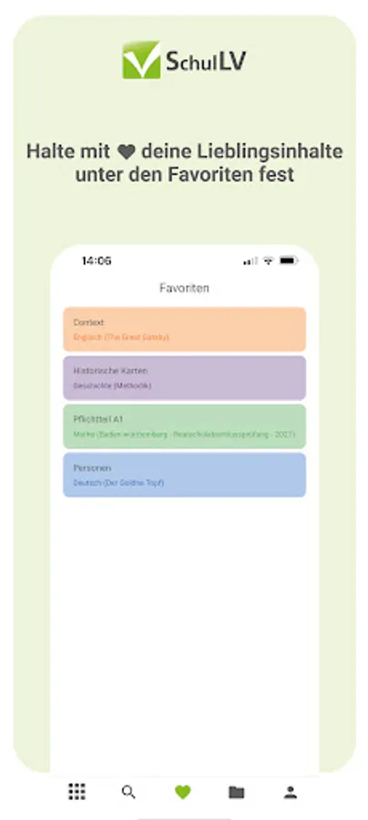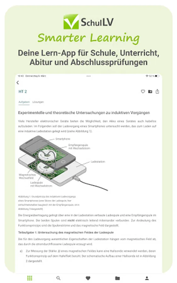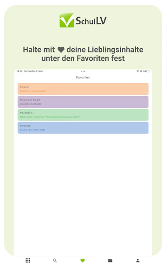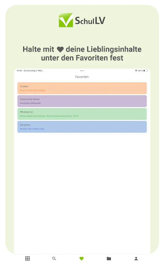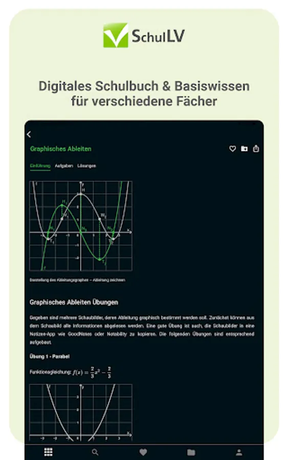 With the SchulLV app you can prepare for your exams digitally from anywhere and at any time. Take advantage of the advantages of digitalization and have your subjects in one place - instead of being spread over several books.