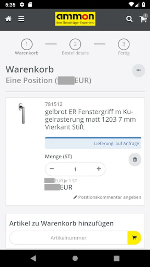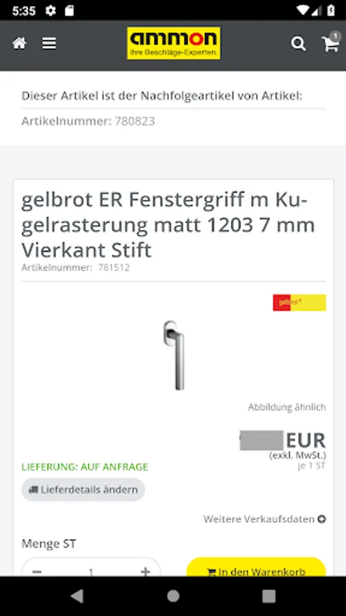 The Ammon nonstop app provides insight into the entire online product range of Ammon Beschläge-Handels GmbH and enables easy and quick article search as well as convenient order processing. To make the article search as easy as possible, the app also has a scanner function. Here you can simply scan the article barcode and order the article via the app.