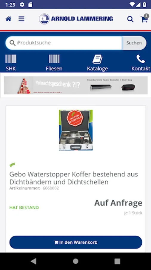 The Profiportal Lammering App provides insight into the entire online product range of Arnold Lammering GmbH and enables easy and quick article search as well as convenient order processing. To make the article search as easy as possible, the app also has a scanner function. Here you can simply scan the article barcode and order the article via the app.
