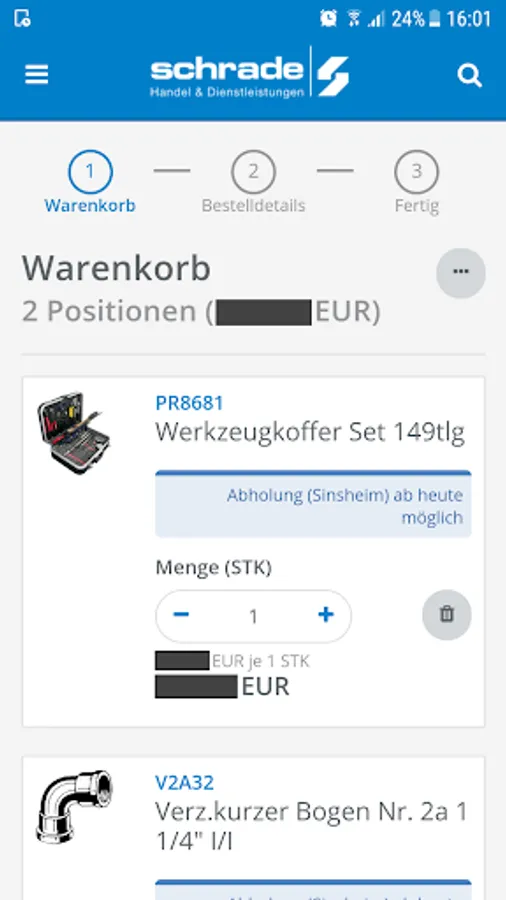Schrade24 provides insight into the entire online assortment of C. Schrade GmbH and enables quick and easy product search and a comfortable order processing. To make the product search as simple as possible, has Schrade 24 also via a scanner function. Here, simply the product bar code can be scanned and ordered 24 of the article on Schrade.