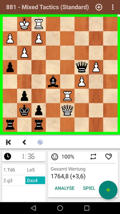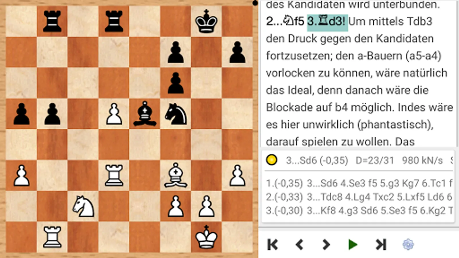 After solving a task, you have the opportunity to analyze it. Here you can consult an engine, which shows you the position evaluation and the contained possible variants with a rating.