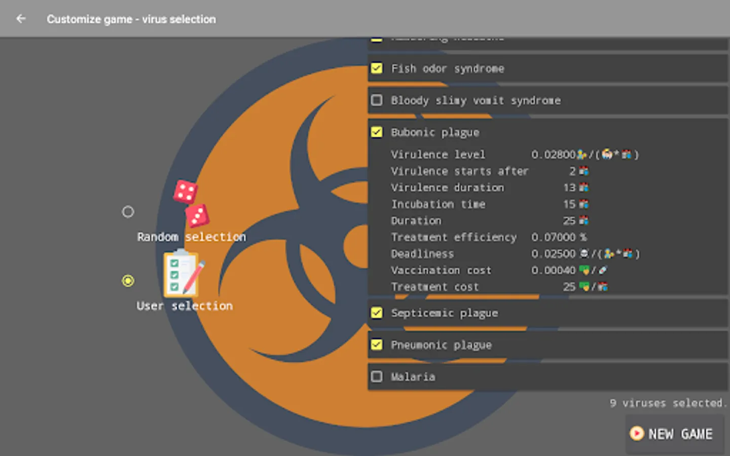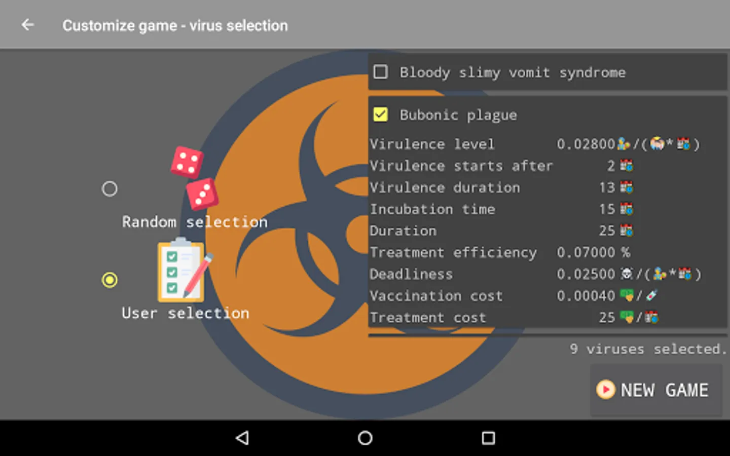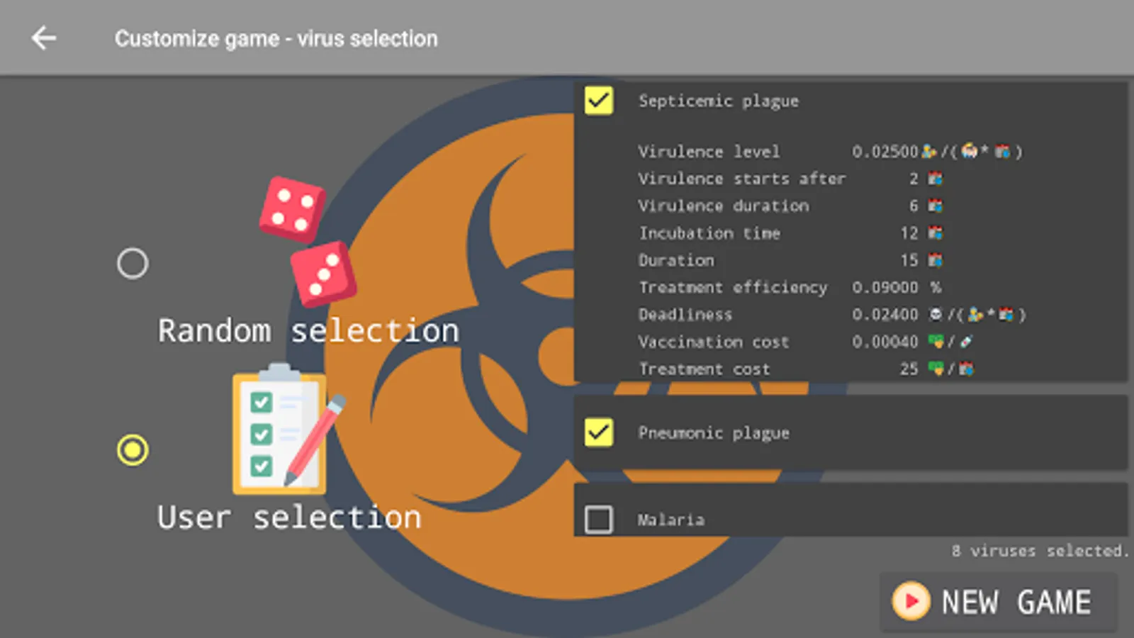- a number of random viruses or an explicit set of viruses you want to break out (one or more)