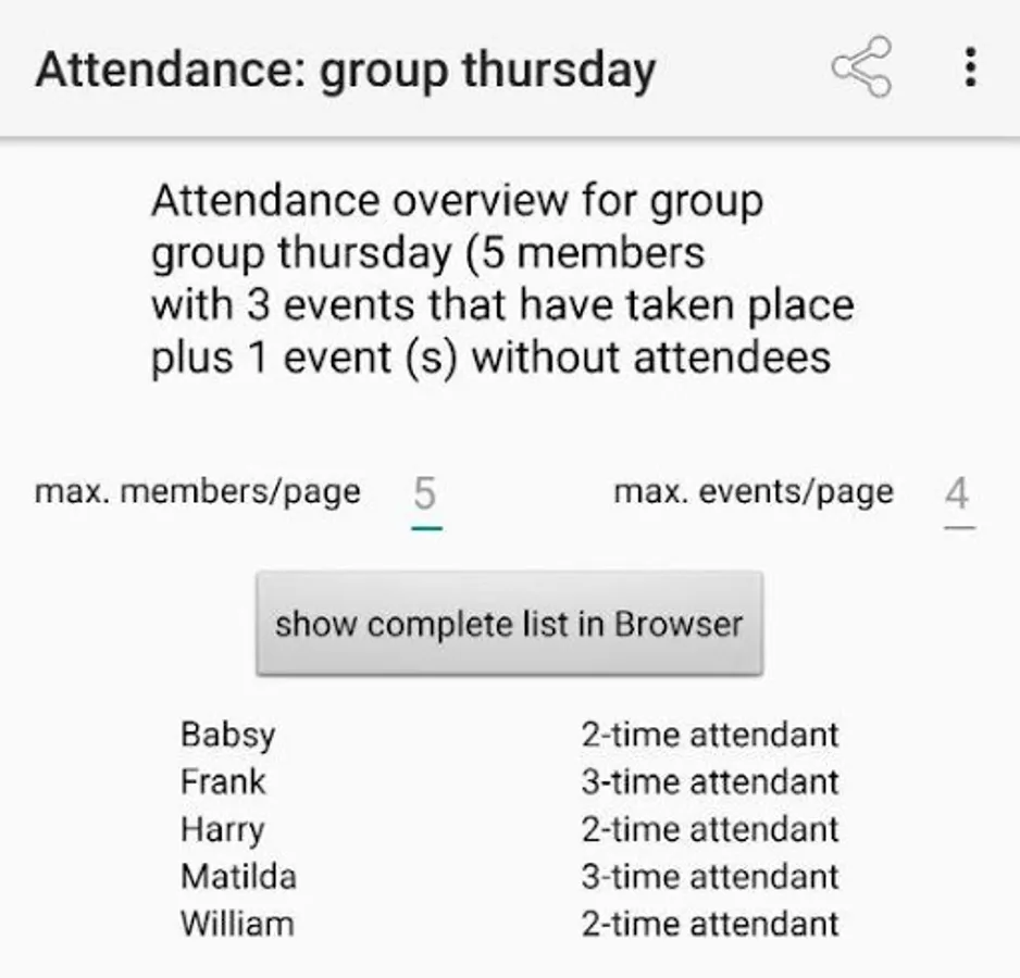 * meaningful statistics, and share them via e-mail, WhatsApp or similar.