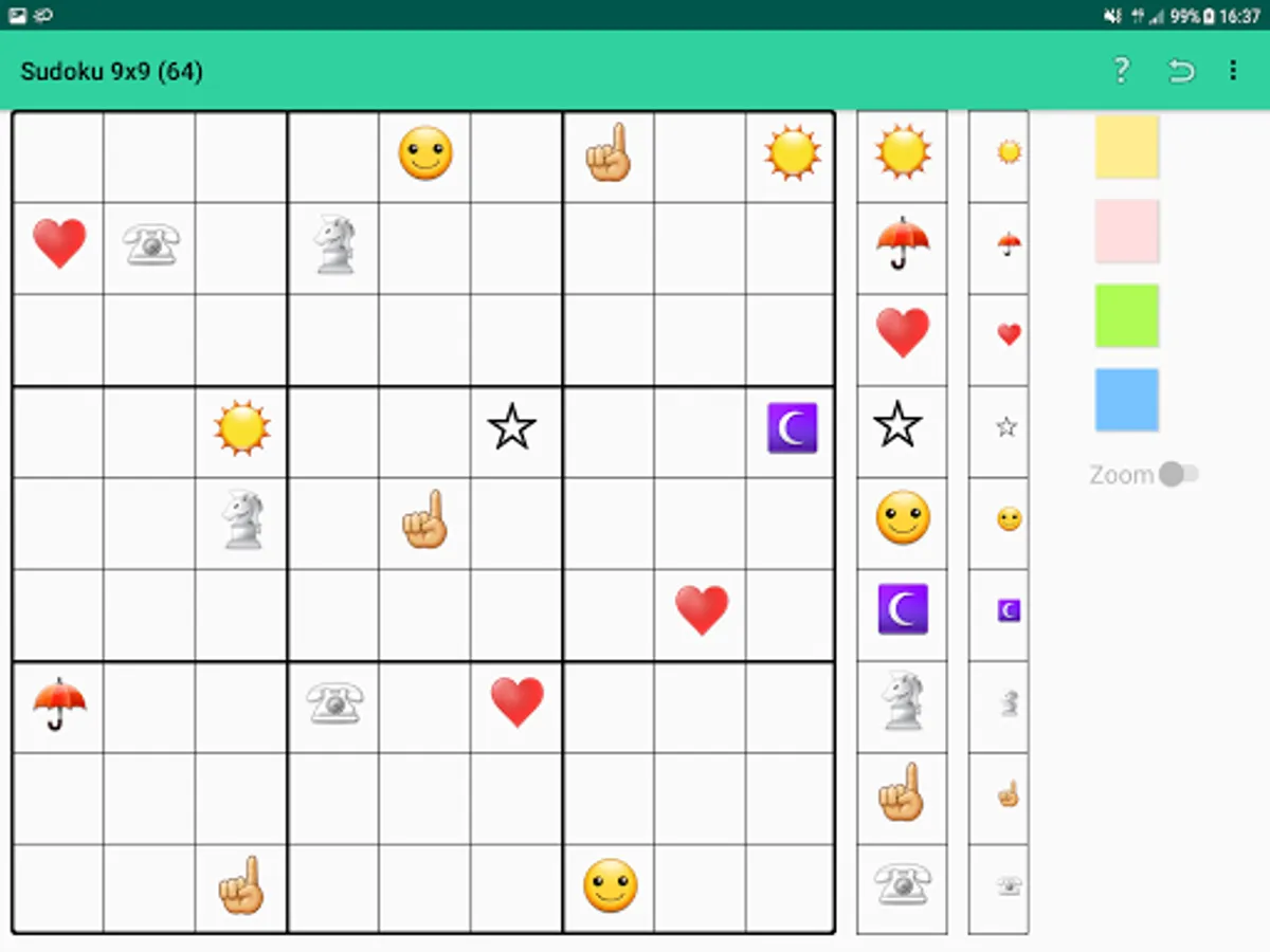 * up to 9x9 also child-friendly symbols instead of numbers