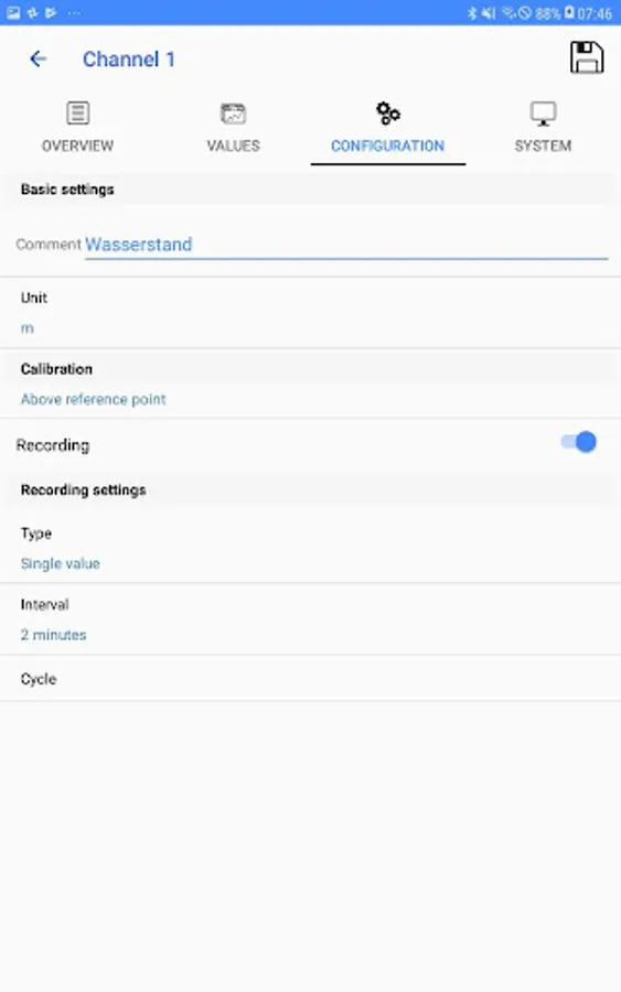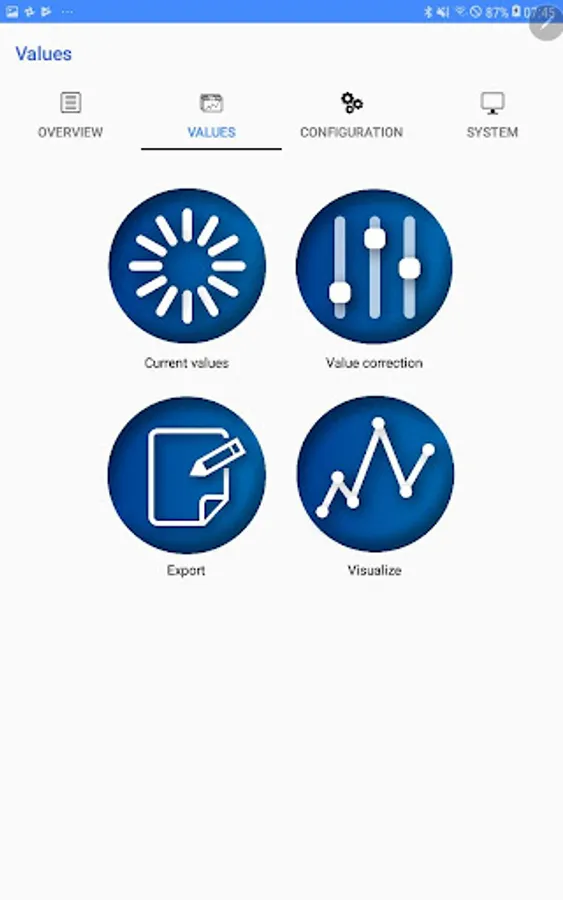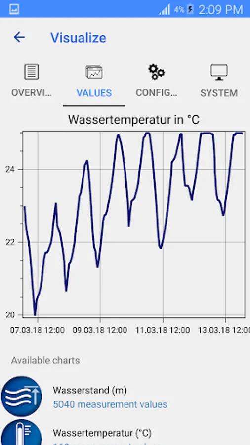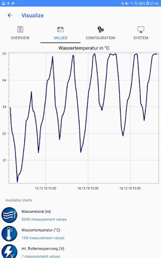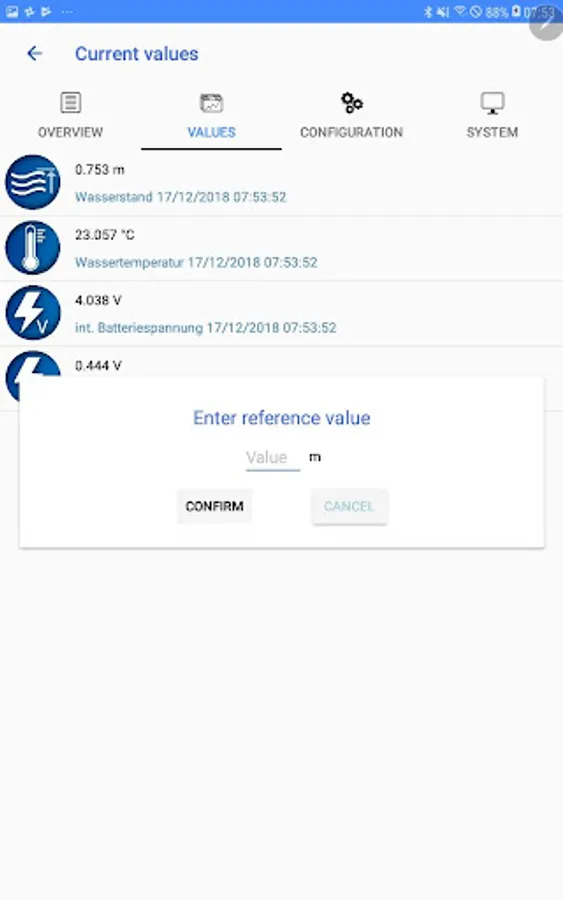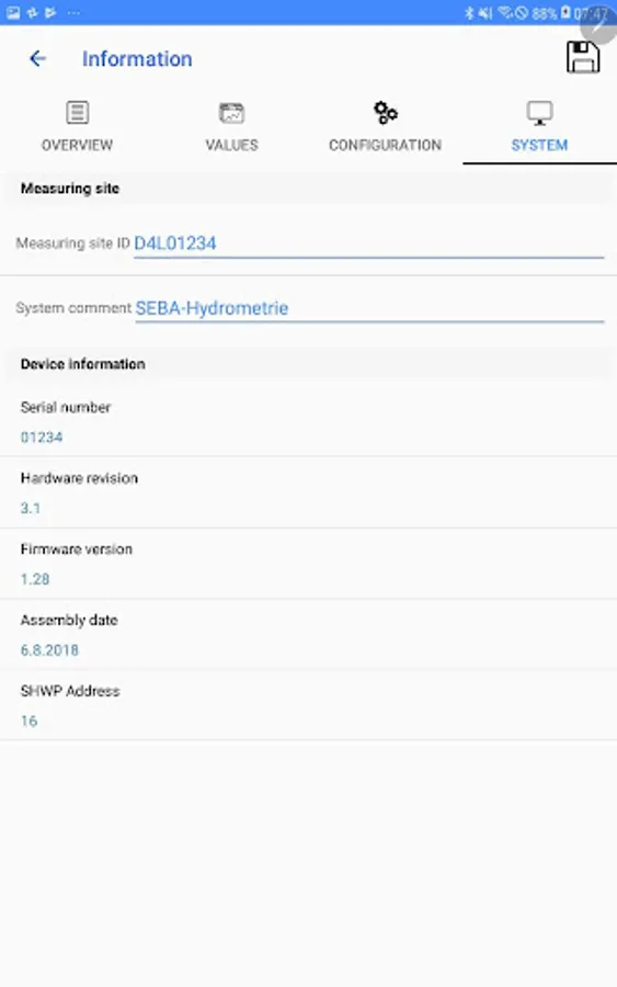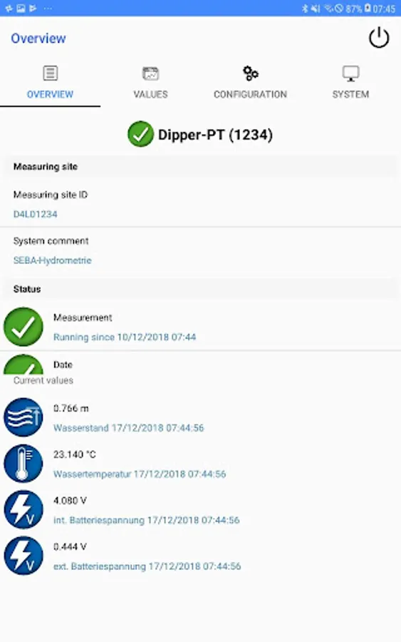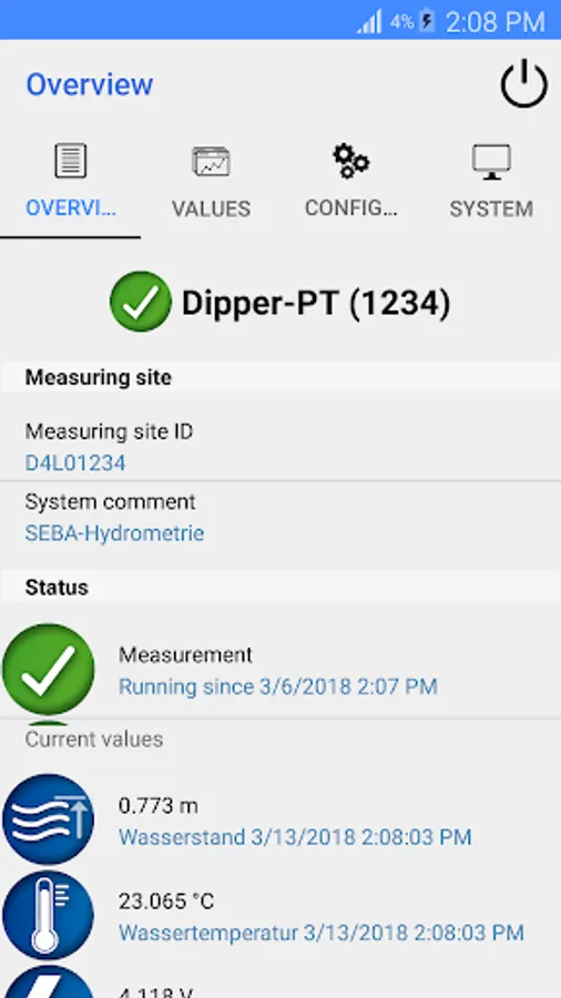 Therewith you comfortably can access SEBA measurement systems via android-smartphones or –tablets in connection with SEBA BlueCon. This contains, among others, display of actual measured values and system status, programming of channel- and system-settings, adjustment of measured parameters and reading of logged data.