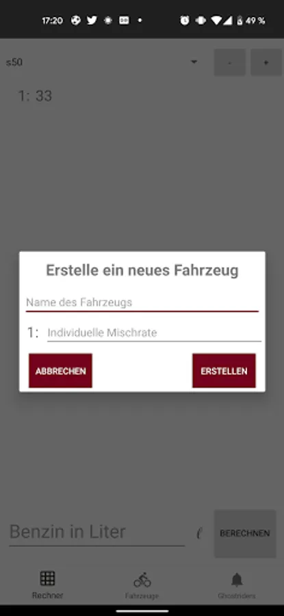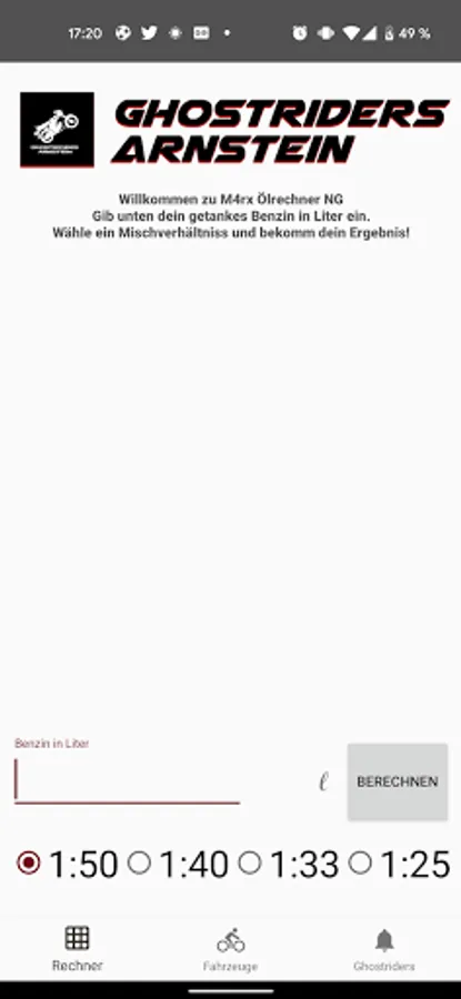 With this app you can calculate how much oil you have to add to the gasoline for your 2-stroke vehicle in order to achieve the mixing ratio of your choice.