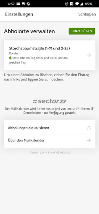 You will receive appointment updates from version 1.1. automatically, so that you always have the latest appointments at hand every time you start. You can also have the dates from the app entered directly into your device calendar, which will remind you of collection dates in good time.