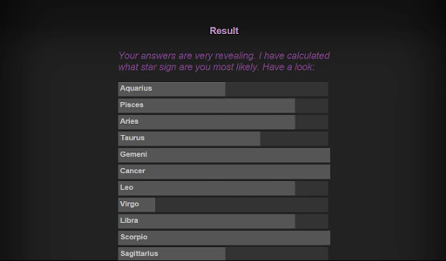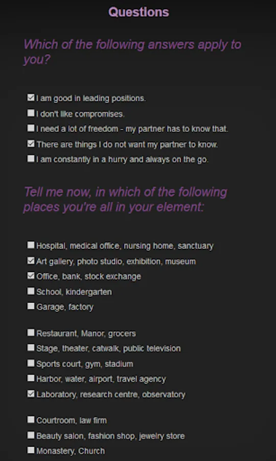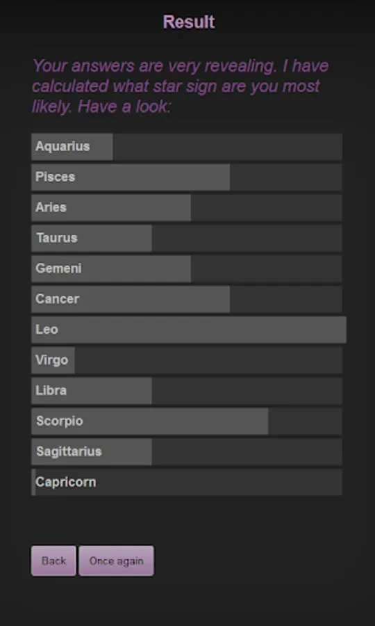 Esmeralda tries to calculate your sign by a few details about your character. Decide for yourself whether this is possible or not. In any case Esmeralda is an entertaining and amazing party fun.