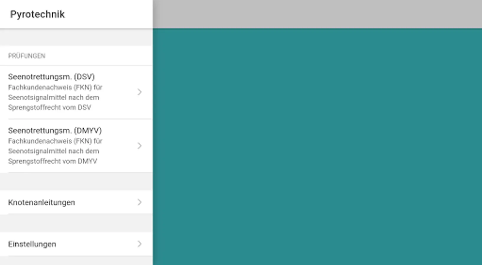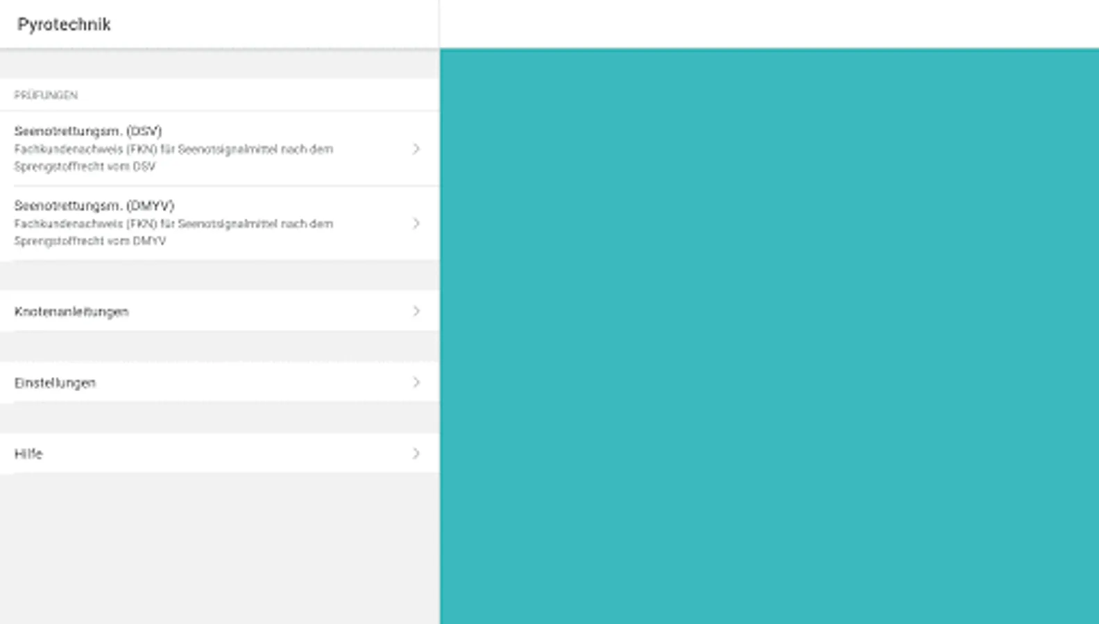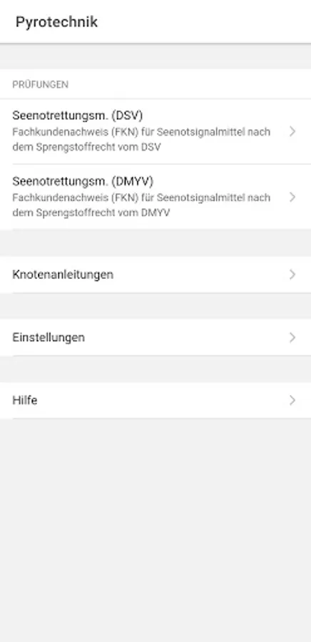 This program offers you the opportunity to practice for the theoretical part of the certificate of specialist knowledge (FKN) for distress signals according to the explosives law.
