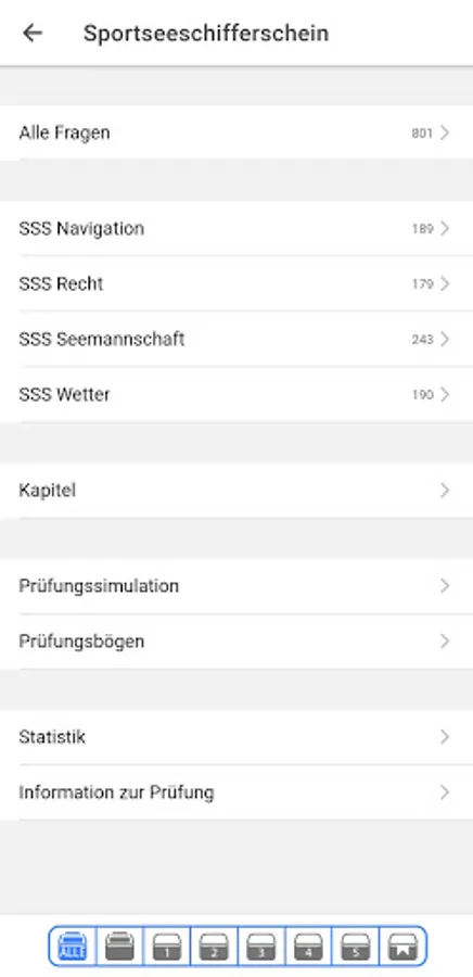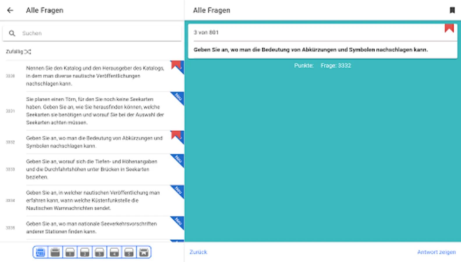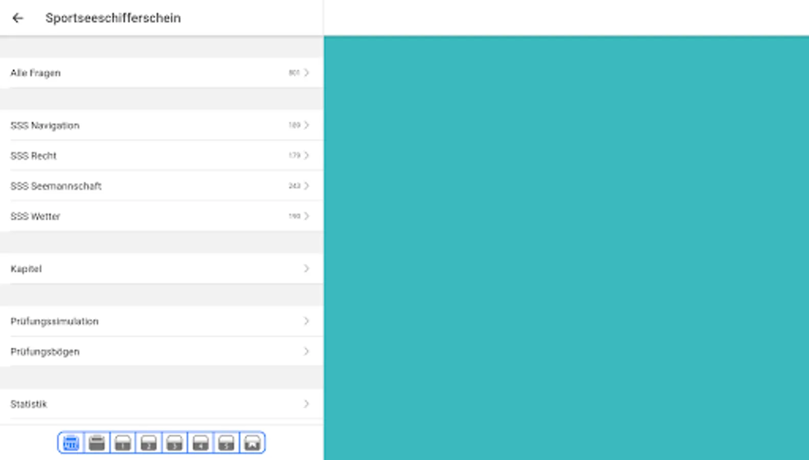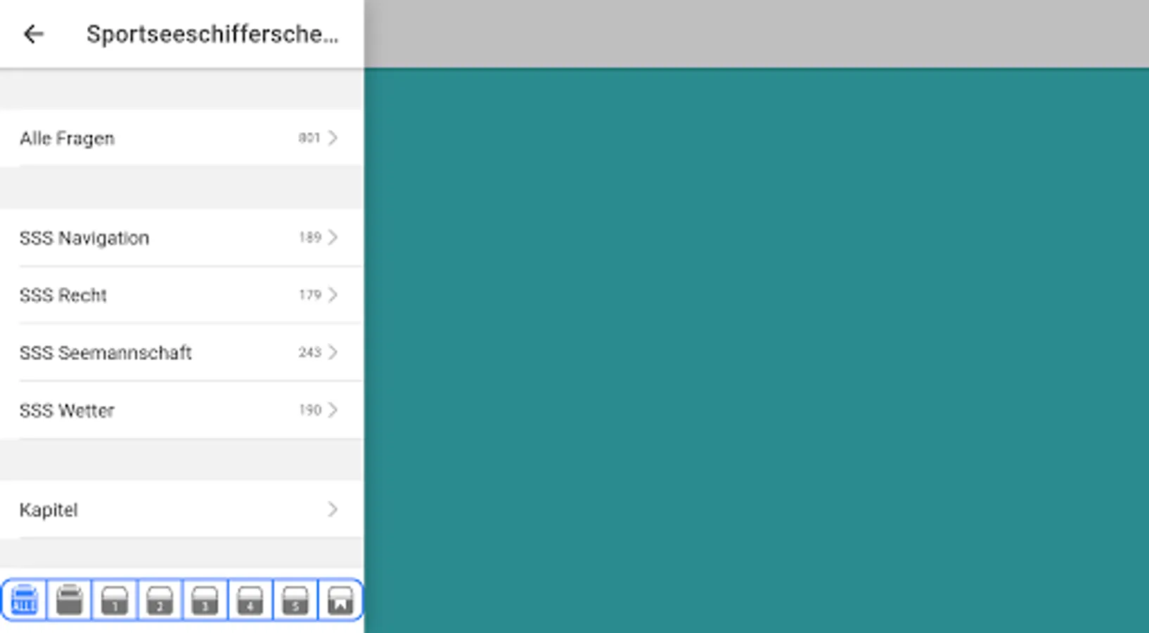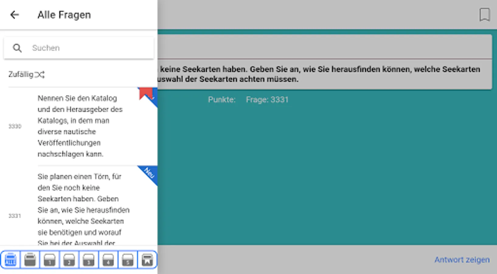 The navigation part contains the theoretical questions on the individual subject areas, but not the navigation tasks to be carried out with the help of the nautical chart, because the handling of the navigation tools on the iPhone, iPod Touch or iPad cannot be practiced meaningfully. We don't want your iPad to be scratched with the dividers!