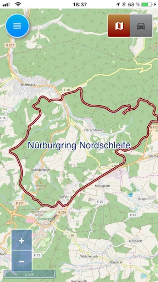 Consider that this app shows its real power when you are driving on the Nürburgring Nordschleife. Outside the track it is just a navigation tool.