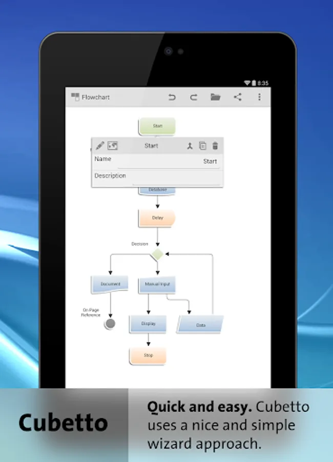 Unrivaled and exceptional is the the consequent use of automated layout within Cubetto. You focus on the contents, the app on their presentation. Our Process-Flow-Wizard allows you to gather procedures in a speed you do not want to miss anymore. Cubetto is an excellent tool for workshops and meetings, either via Screen Mirroring.