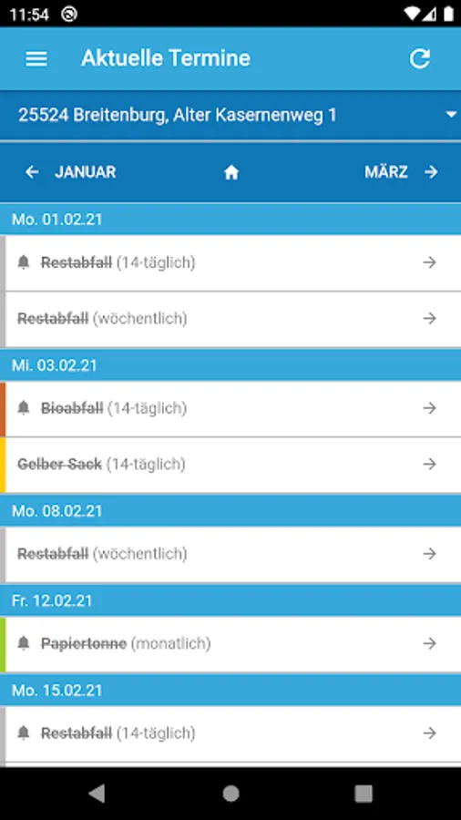 With the free app you can save your personal collection appointments including a reminder function in your calendar.