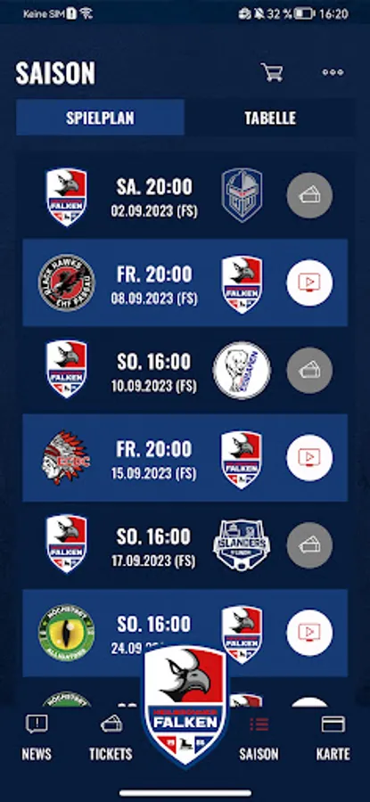 Always well informed about all past and upcoming games! The game plan and table provide an overview of all Heilbronn falcon games and the current table position.