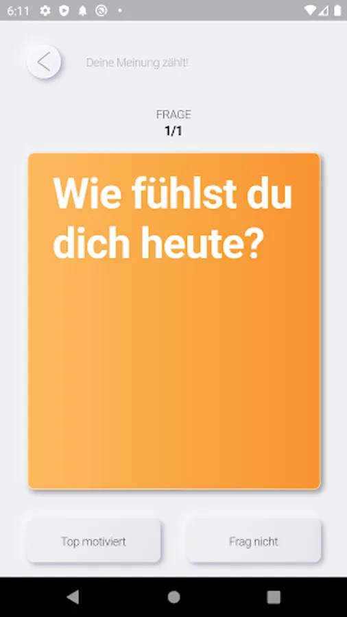 Thanks to the intuitive operation, surveys can be answered quickly and easily. Decide on one of the answers or a neutral position by tapping one of the answer options or swiping the question tile in the corresponding direction.