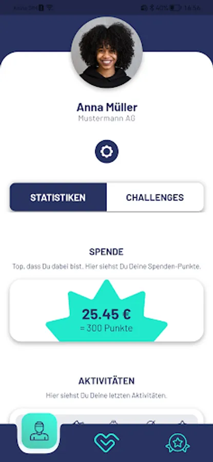 You get points for every completed challenge. The more active you are, the more points you get and the greater your personal contribution to reaching the fundraising goal. Whether beginner or professional: every training session counts and is rewarded with points.
