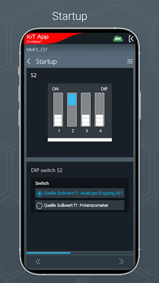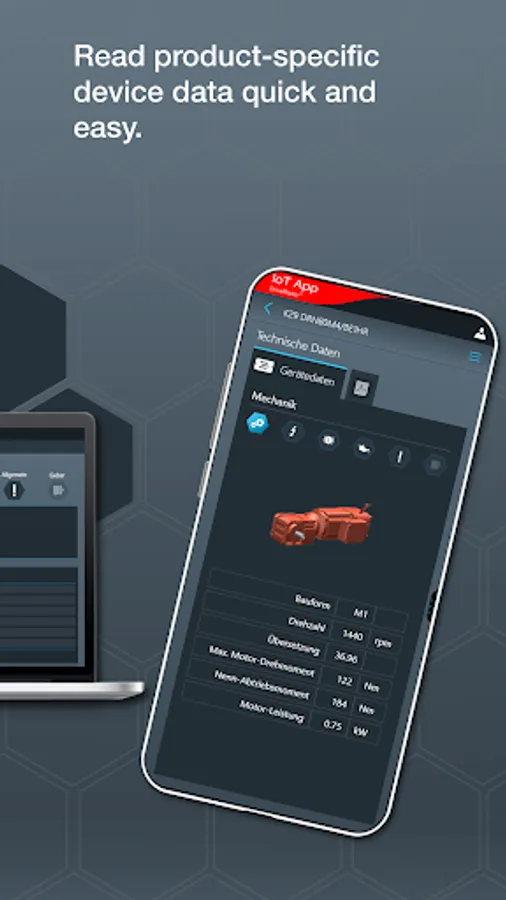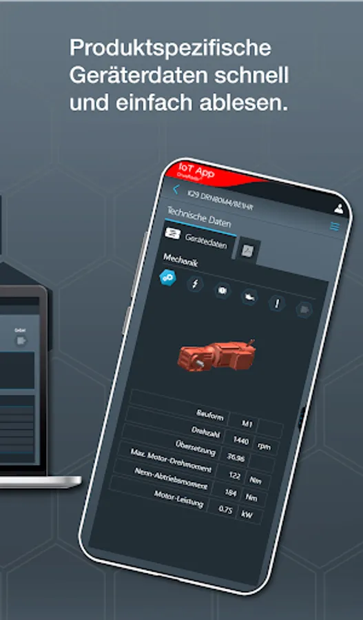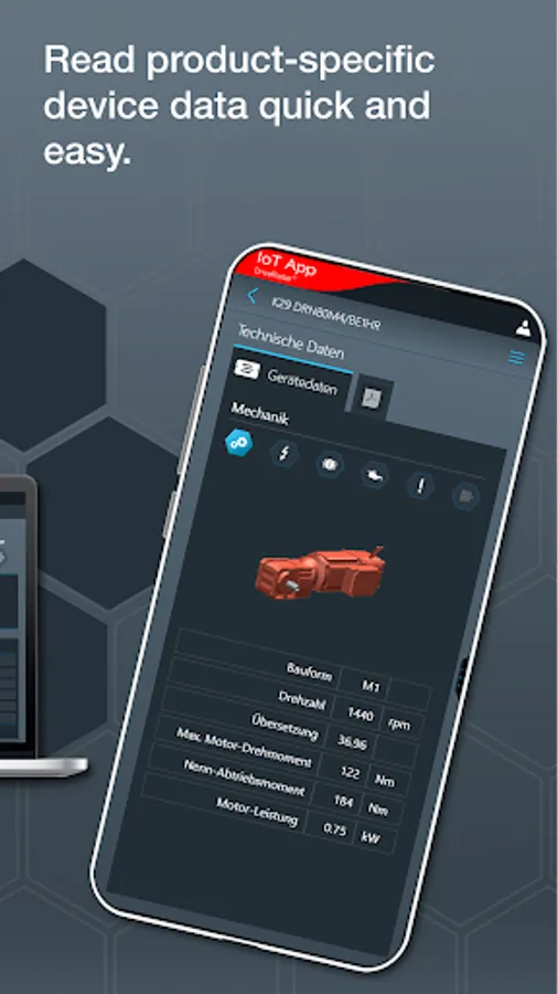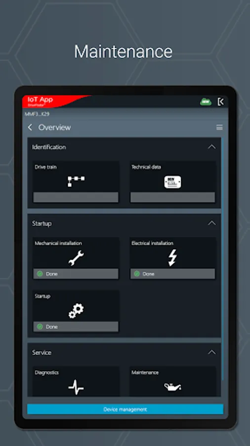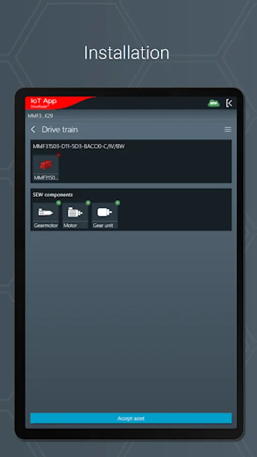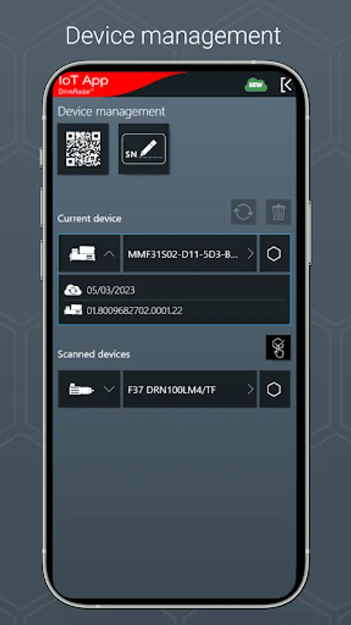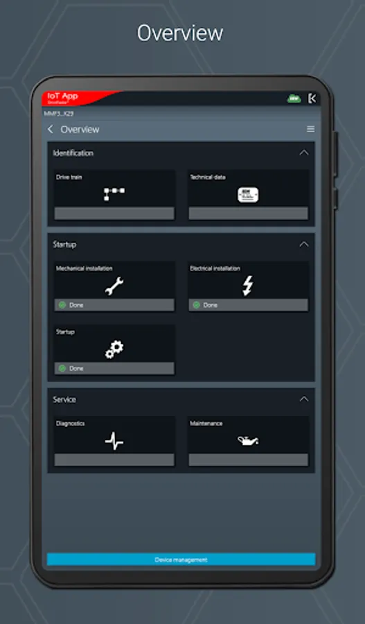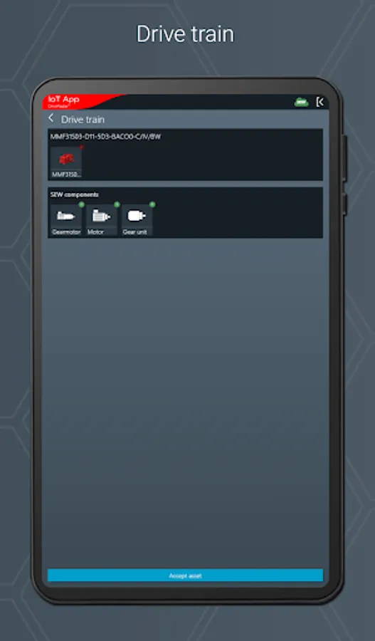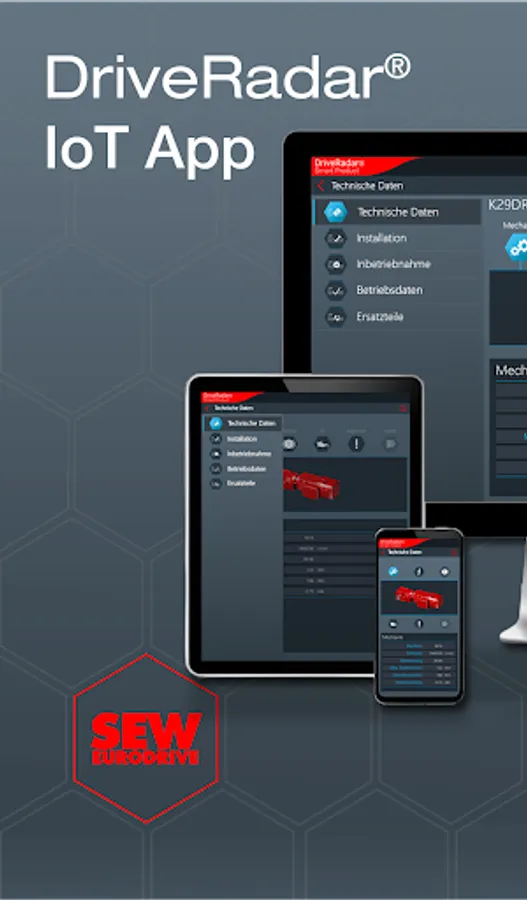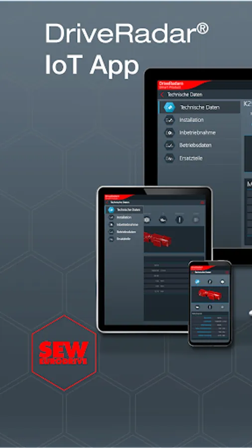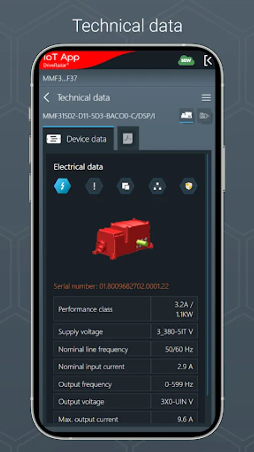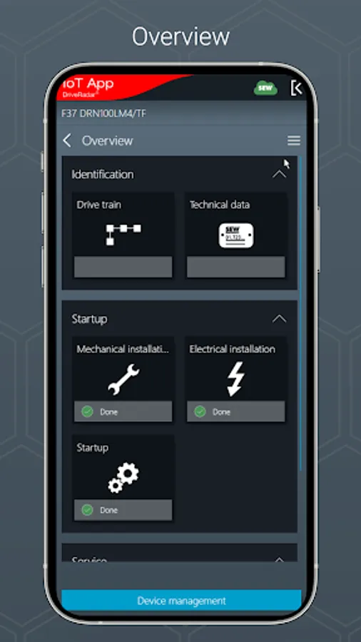 The IoT app is the mobile assistant for all tasks throughout the entire product life cycle of an SEW product. The app provides support from installation to startup to maintenance and delivers all technical data and work packages step-by-step and product-specific.