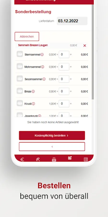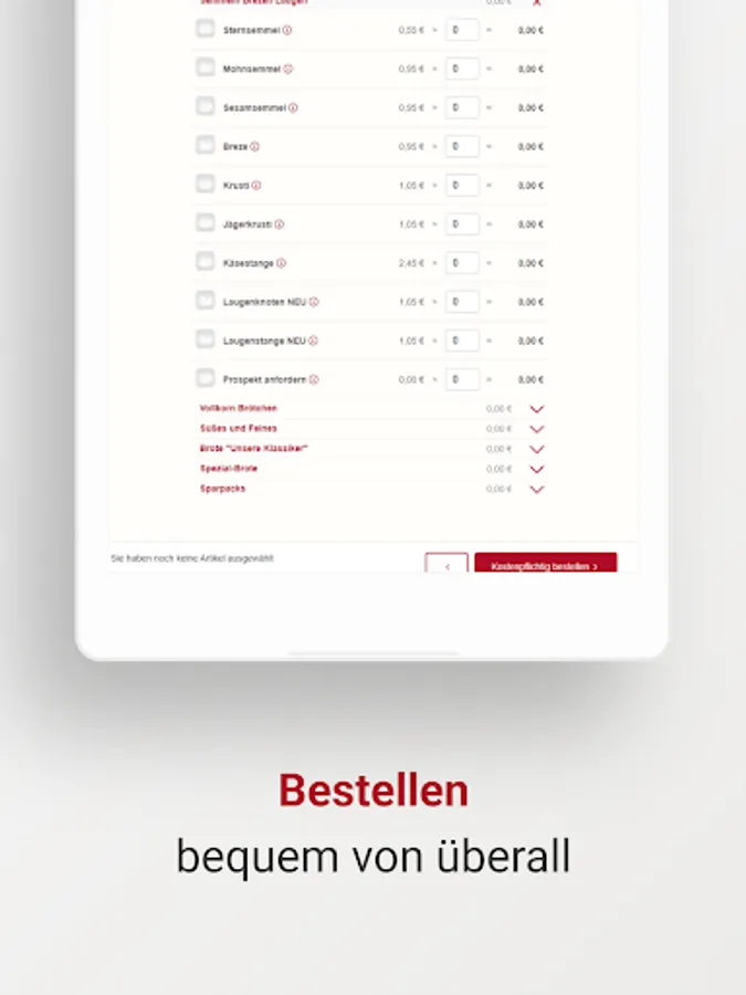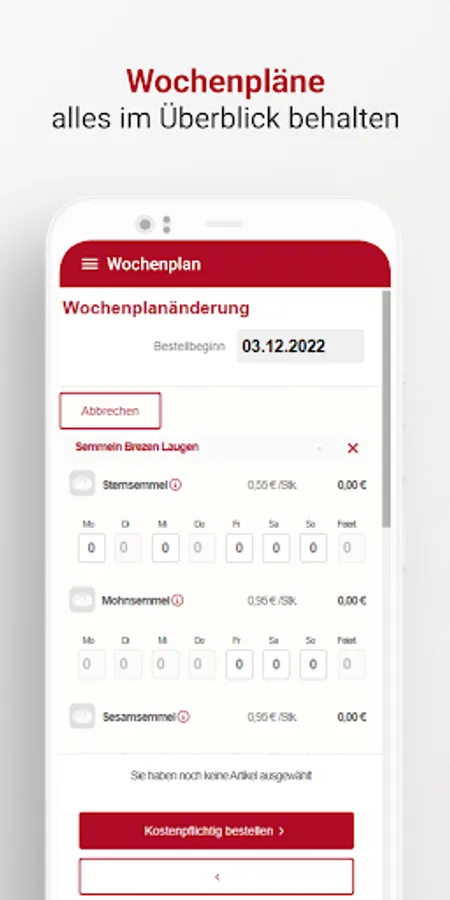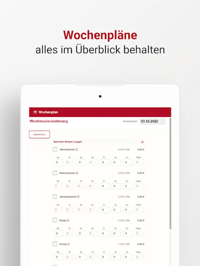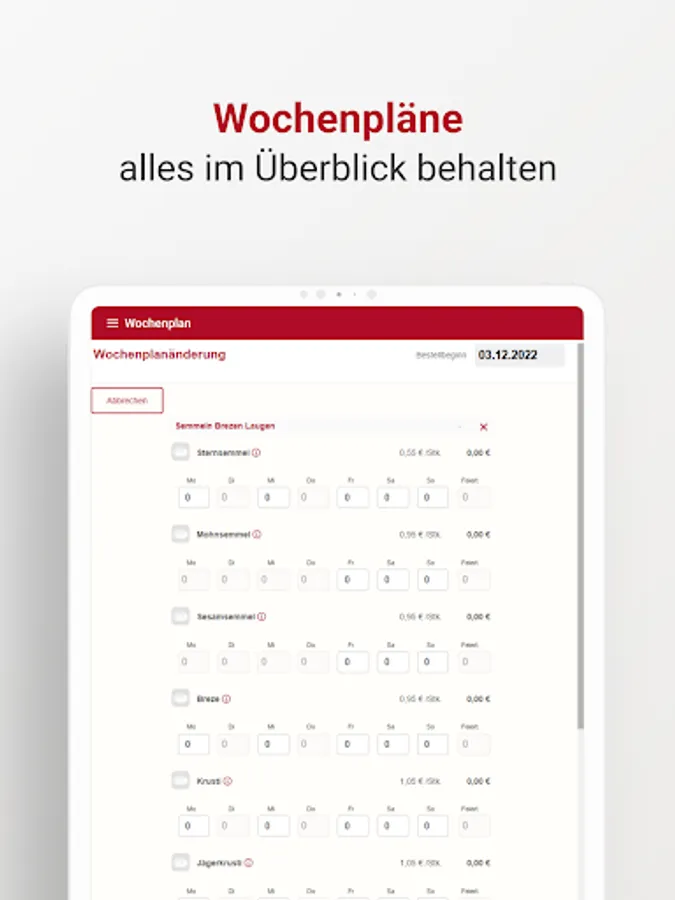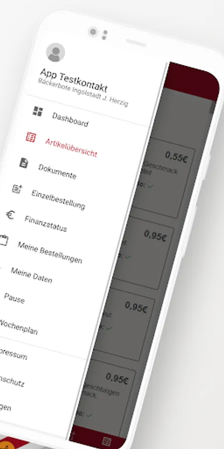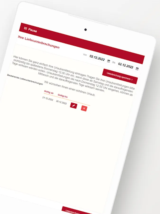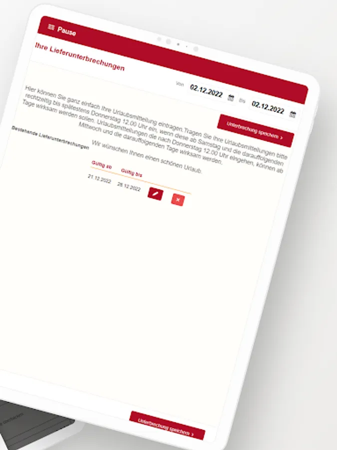 The app enables Bäckerbote customers to access the customer portal, where delivery weekly plans, individual orders, order interruptions, etc. can be managed.