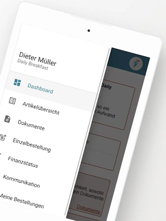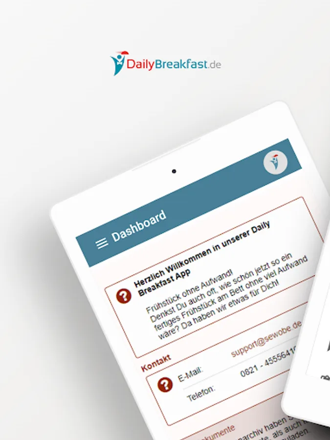 The app gives Daily Breakfast customers access to the customer portal, where weekly delivery schedules, individual orders, order breaks, etc. can be managed.