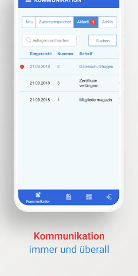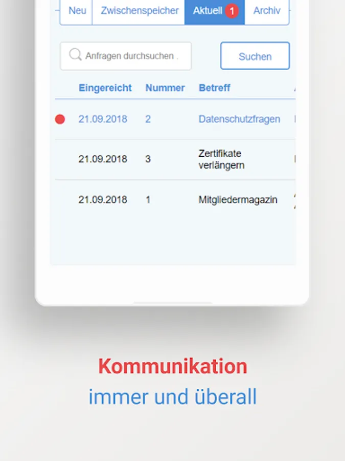 Internal communication: A ticket system was created for secure communication with those responsible or contact persons in the organization. This enables ticket-related and data protection-compliant communication.
