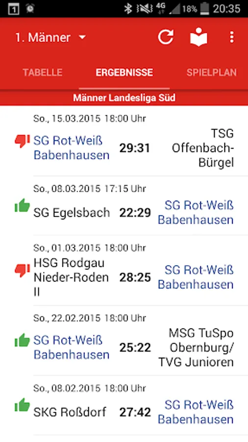 With this app you have scores, results and fixtures of all SG Rot-Weiss Babenhausen teams always in view.