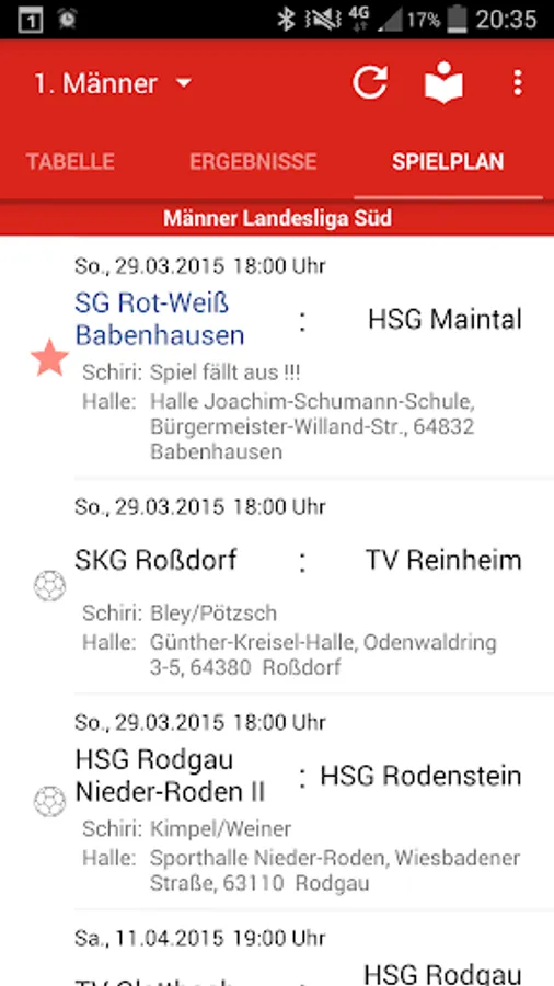 - Match the calendar to display the next home games of all SG Rot-Weiss Babenhausen teams