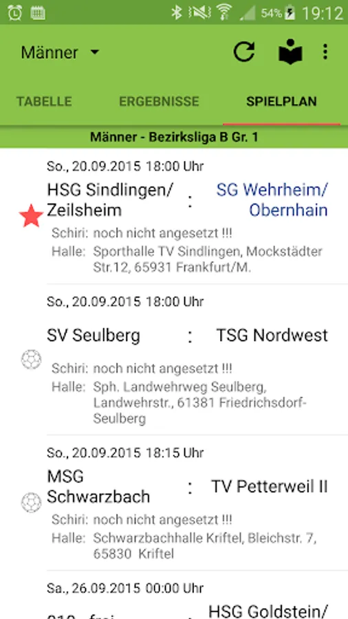 - Home match calendar to display the next home matches of all SG Wehrheim / Obernhain (SGWO) teams